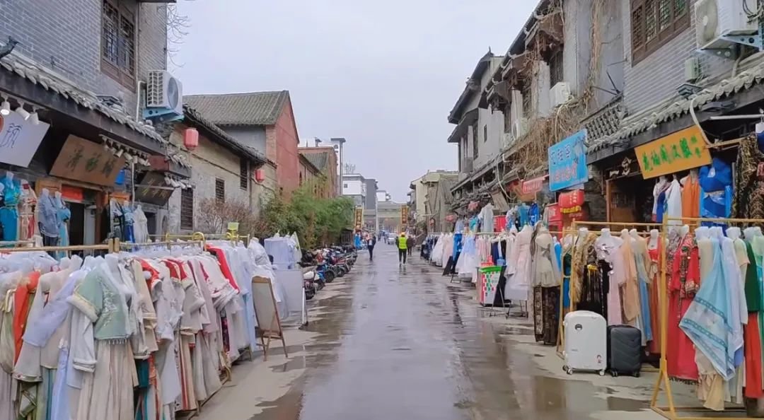 一排排不同形制、色彩丰富的汉服和应有尽有的民族服饰,透过玻璃橱窗邀请着路过的游客,随时在洛阳街头开启一场穿越之旅。