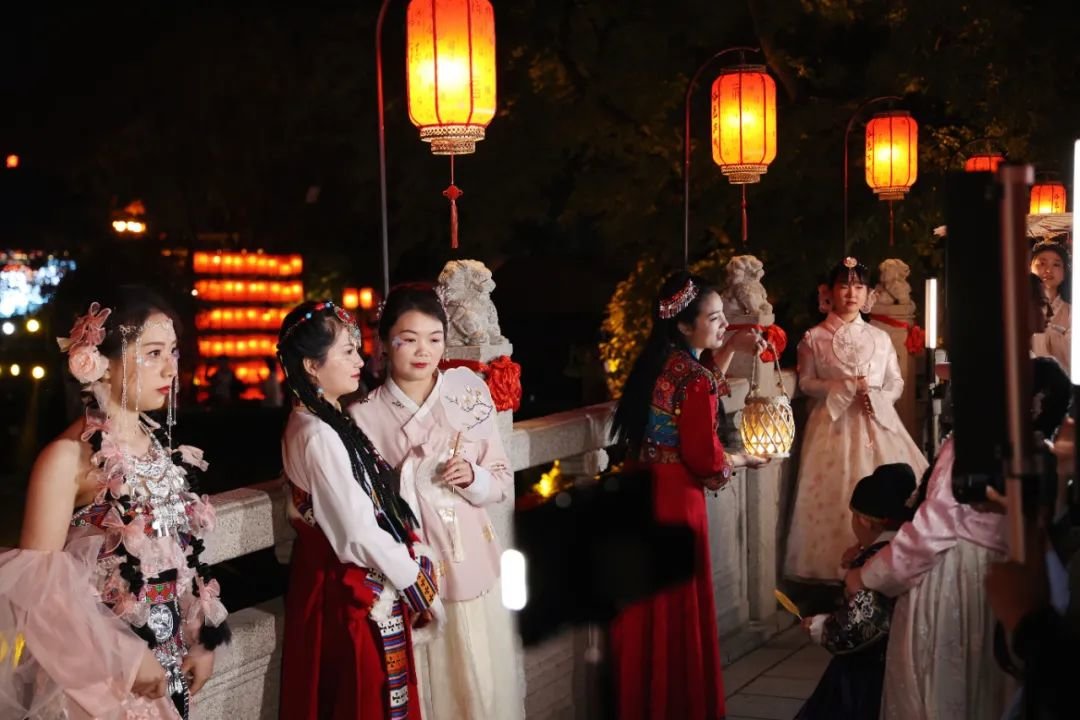 在抖音公布的平台热门汉服打卡地TOP5里,洛邑古城高居榜首。夜幕降临,这座仿古街区仿佛一键切换了盛唐夜市模式。