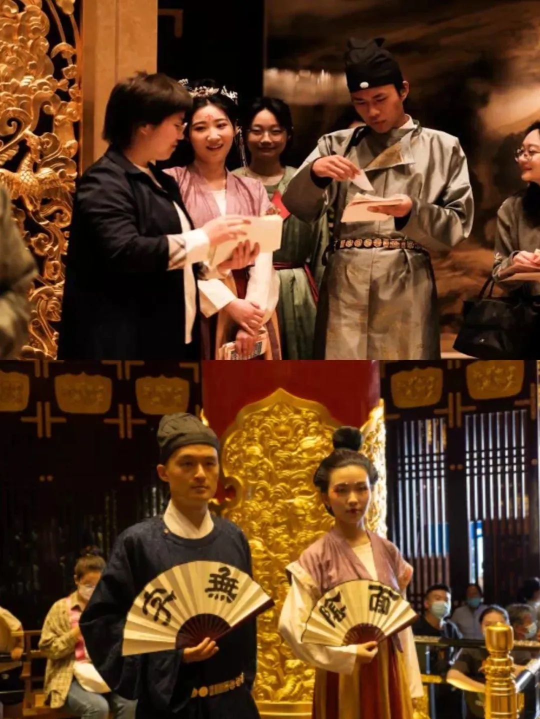 如果说仅在仿古街区内拍摄古风大片,还不能满足那颗渴望穿越的心,那么在历史遗迹、博物馆里和“武则天”共赴宫廷夜宴,或是跟随“狄仁杰”参与奇案,绝对算得上是沉浸式的穿越了。