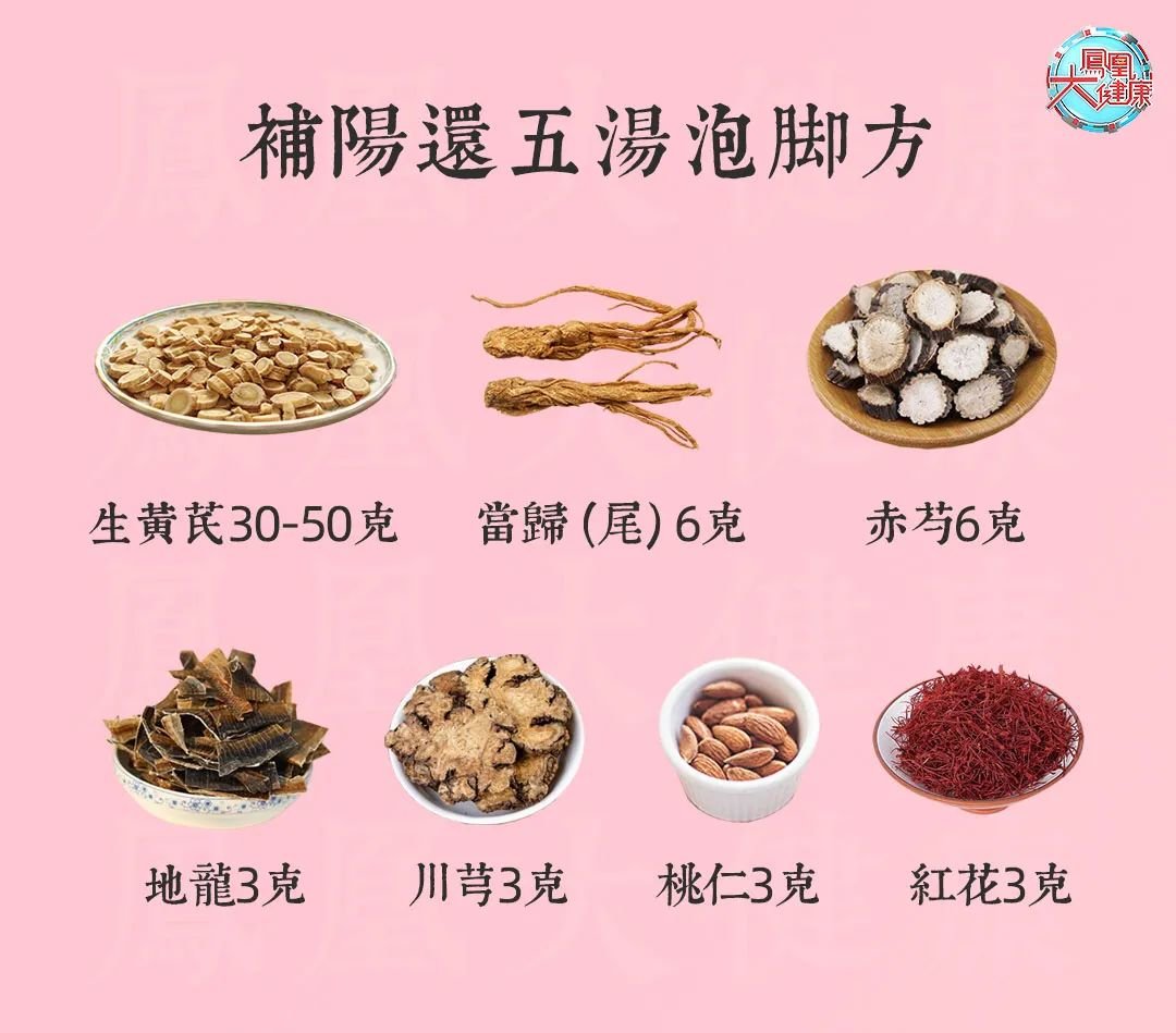 除了泡茶喝,日常还可以使用补阳还五汤原方泡脚,效果也不错,但需要减少黄芪的用量。