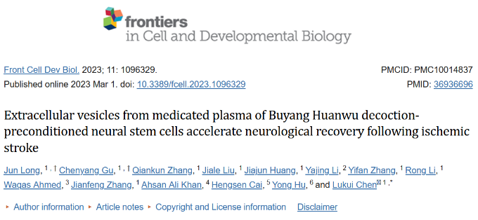 发表在Front Cell Dev Biol上的研究认为,补阳还五汤(BHD)是一种经典中药汤剂,有望缓解缺血性脑卒中后神经功能损害,并可能通过NSC-EVs促进神经恢复。