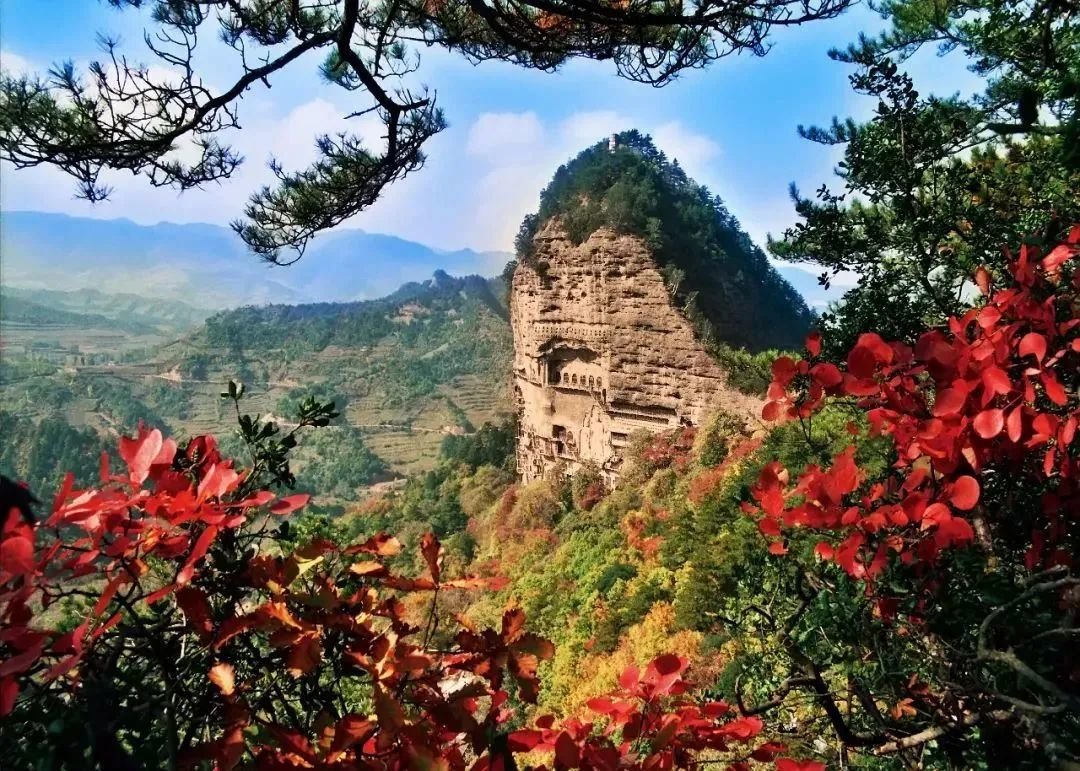 麦积山坐落天水麦积区,由麦积山、仙人崖、石门、曲溪、街亭温泉五个子景区180多个景点组成,拥有丰富多样的生物类型和物种,被称为“陇上林泉之冠”,以烟雨麦积、绝壁佛国闻名于世。山上麦积山石窟现存221座洞窟、10632身泥塑石雕,1300余平方米壁画,被誉为“东方雕塑艺术陈列馆”,一面绝壁上静立着千余座佛像,北魏的刀枪铁骑,隋唐的温婉笑容,两宋的衣袂飘飞,历史在石壁上隽永停留。