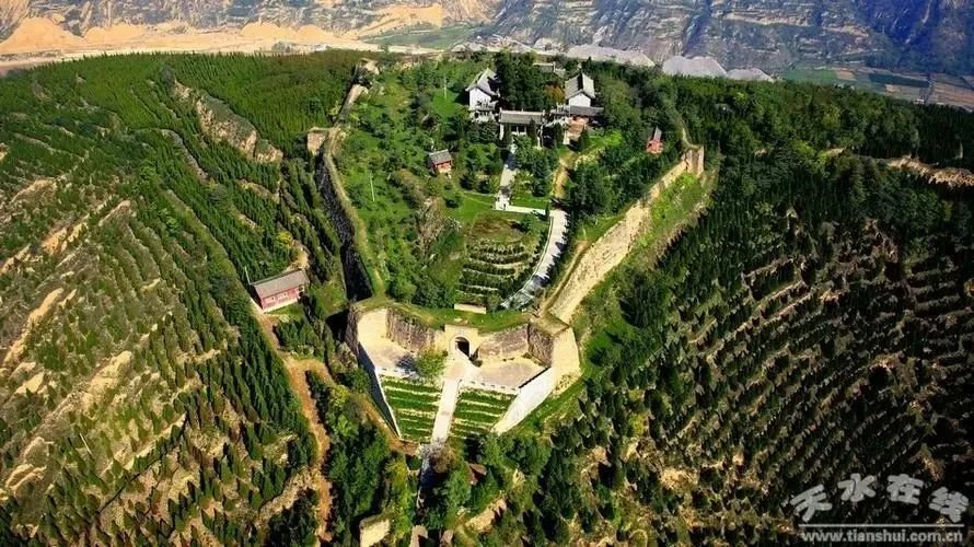 天水卦台山,相传伏羲为仰观天,俯察地,始八卦,创文字之地,卦台山由此而得名。卦台山山势奇特,形如龙头,突兀挺拨,至今山上还留有一座画卦台。渭河以S形流过三阳川,卦台山与导流山东西相望,守卫三阳川,又恰似太极上的两点,在渭河中心有数处酷似太极图形的滩地,有一块既如笋柱又似画笔的大石,名为分心石。山峰隽秀,溪流淙淙,这里已成为人们寻胜览迹不可错过的景点。