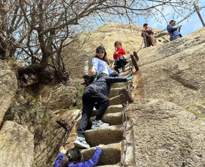 他们还跟着妈妈爬了华山。