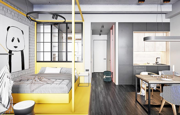高级灰清冷如石泉,柠檬黄明艳如暖阳,它们二者的彼此融合,为空间带来无限的魅力。冷劲与柔软、沉稳与雀跃,只要一眼就会沦陷。