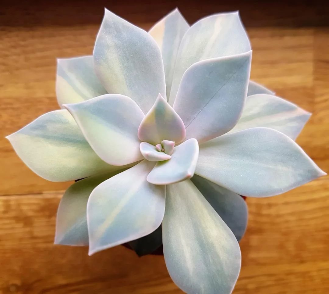 多肉叶片的颜色就会出现变异、这些没有叶绿素的部分就无法进行光合作用,长得就没有那么健康,这个就和动物界的白化病是同样的一个原理。