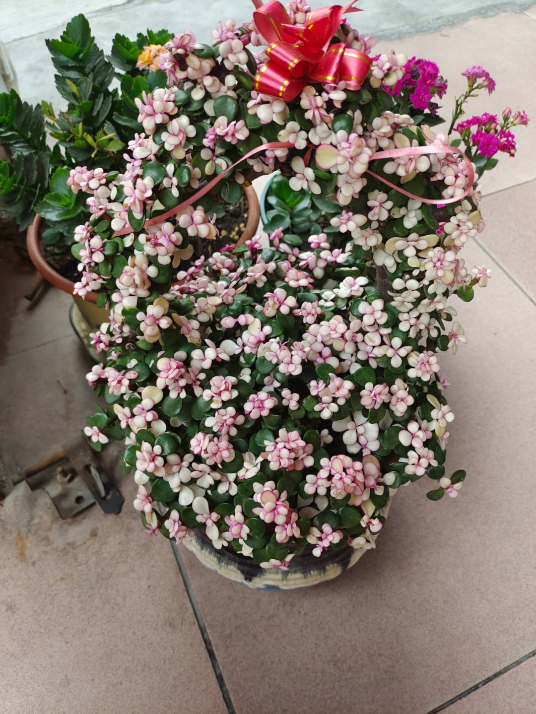 上面是自然带锦的多肉