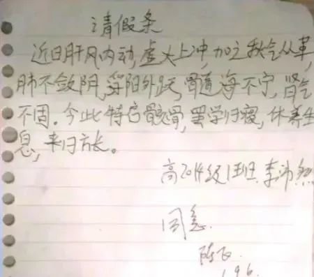 那时个性初彰的他,经常翘课。但他写下的请假条,却也文采斐然。