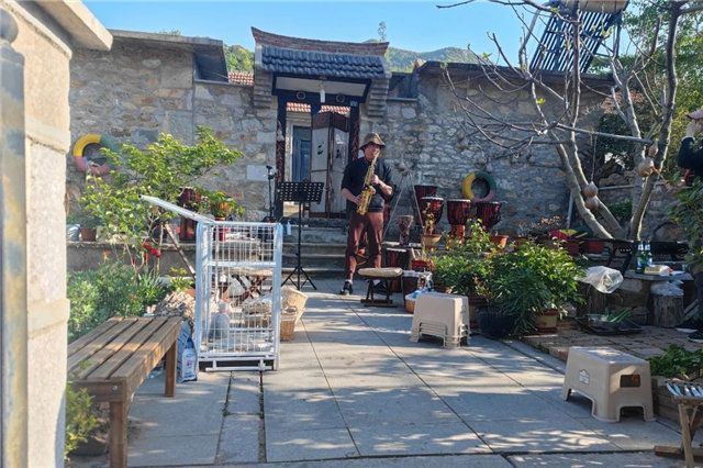 路上看不到垃圾,石头房透着质朴,精致的街景中还飘逸着烟火气,时不时传来悠扬的萨克斯声……在司琳琳看来,这里和她想象中的农村不太一样。“刚刚我们在一户人家门前拍照时,被老婆婆热情地邀请进去坐坐,这还是我第一次进石头房,家里的农家炕很有胶东特色,村民们都很淳朴。”司琳琳说。