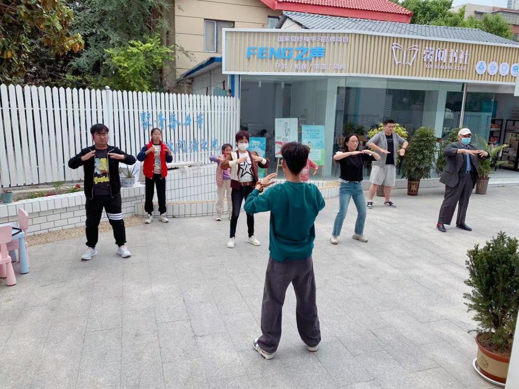 五一期间每天早上九点,书社特别邀请河南大学武术学院的武术冠军赵可阳、张皓然、樊昊城带领社区群众、读者朋友共同学习健身气功八段锦,弘扬武术文化,促进全民健身。