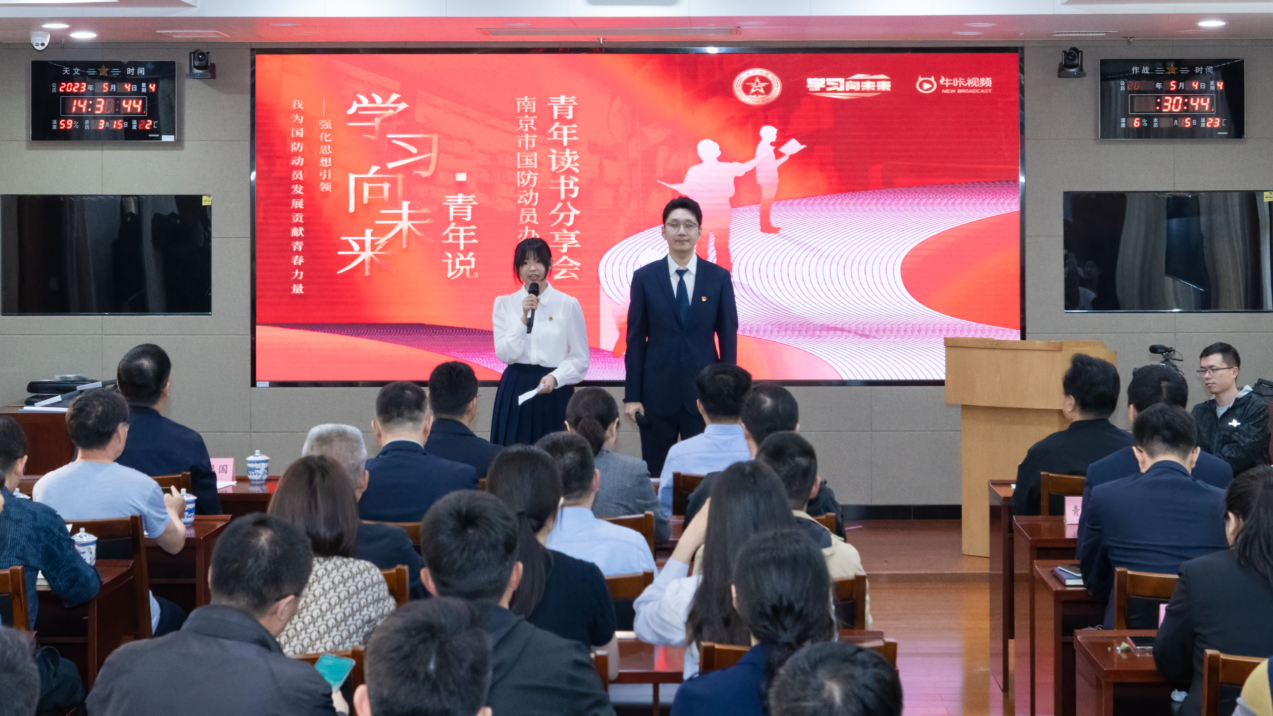 在第74个“五四”青年节来临之际,为深入开展学习贯彻习近平新时代中国特色社会主义思想主题教育,弘扬五四精神,深入学习贯彻党的二十大精神及习近平总书记关于青年工作的重要思想, 5月4日下午,南京市国防动员办公室举办“学习向未来·青年说——强化思想引领 我为国防动员发展贡献青春力量”青年读书分享会。