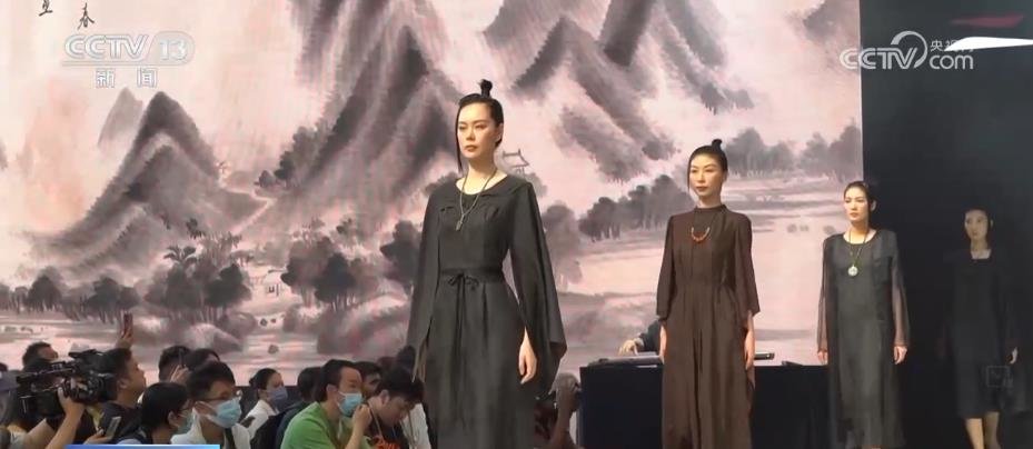 这是一场香云纱服饰展示秀,设计师将非遗传统面料与流行元素相结合进行创作,展示的每一款服装,中国元素都非常亮眼。