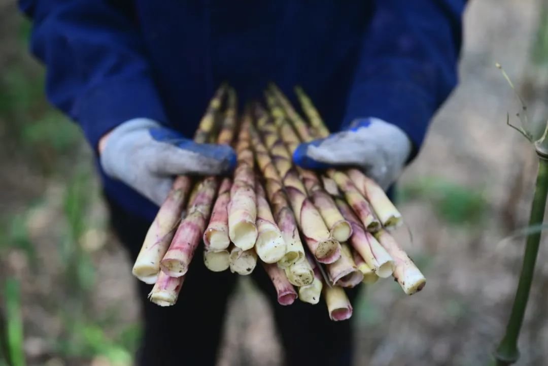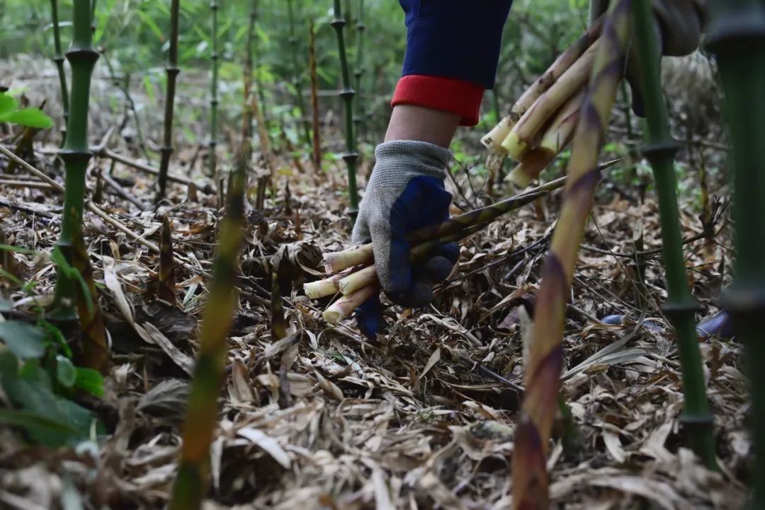 美食与时间往往是一场竞速赛,轻掰、轻折、轻入筐,借助最原始的人工采摘方式,笋农们用勤劳的双手将新鲜的竹笋带下大山。
