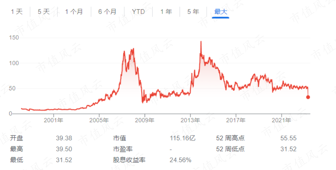 根据FactSet的数据,公司是迄今为止所有美股大型上市企业(注:定义为市值超过100亿美元)中股息收益率最高的一家,第二名Coterra Energy(CTRA.N)的股息收益率约为9.9%。