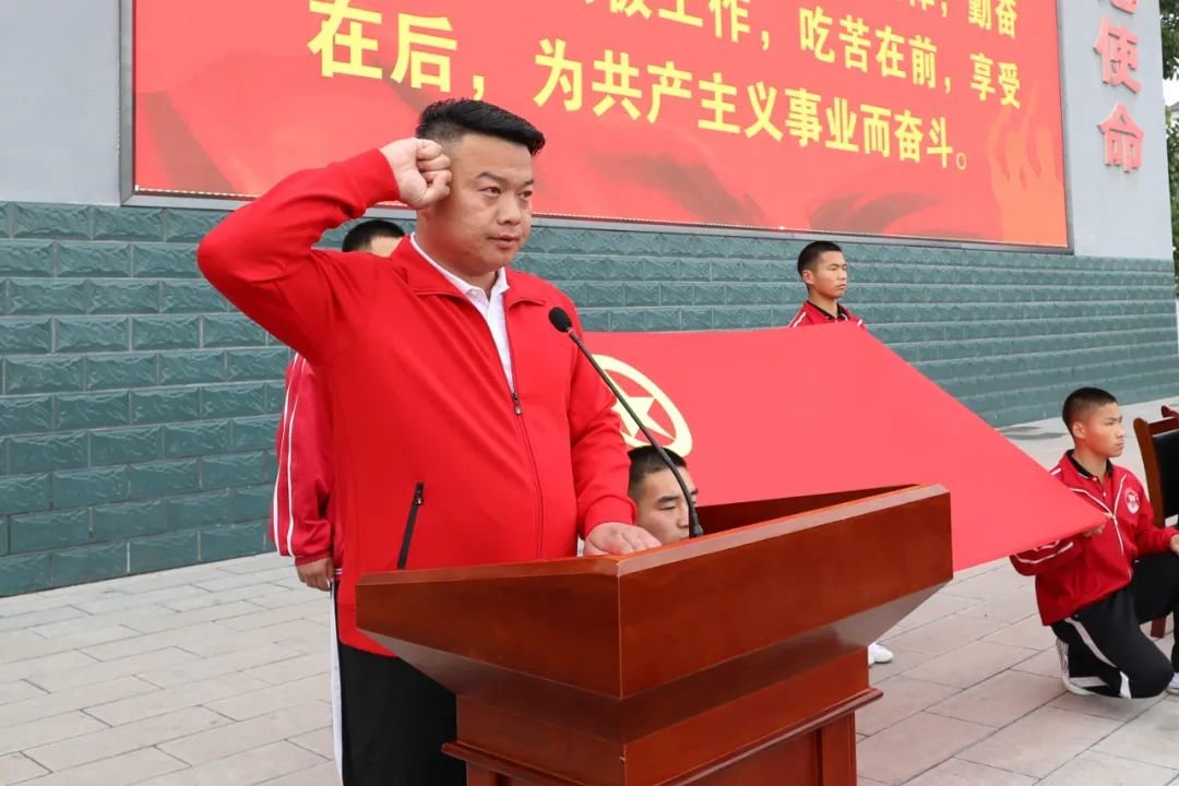 仪式由塔沟武校党委副书记刘龙飞主持,塔沟武校团委副书记耿如意宣读新团员名单,200名表现优秀的青年学子光荣加入中国共产主义青年团,教练员王富旗带领新团员庄严宣誓,新团员代表齐凯瑞同学发言。