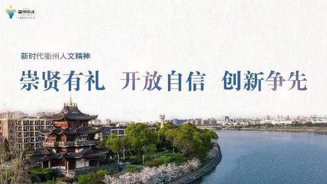 2022年7月,“崇贤有礼、开放自信、创新争先”的新时代衢州人文精神正式发布:“崇贤有礼”,是衢州人向上向善、知行合一的人文传承; “开放自信”,是衢州人大气包容、自强不息的内在品质;“创新争先”,是衢州人敢为人先、勇创一流的时代追求。