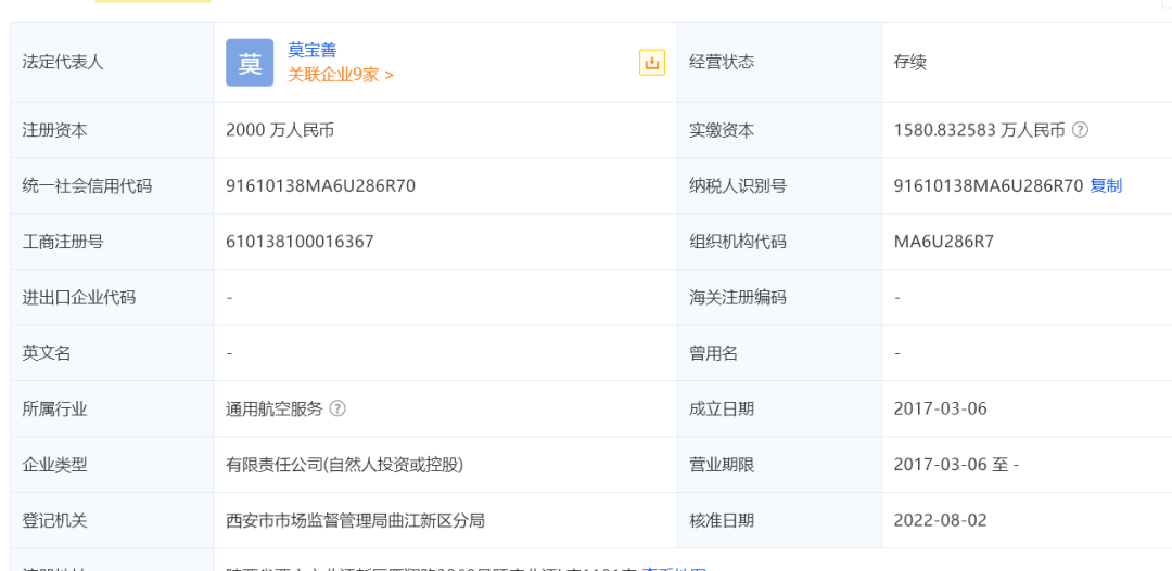 法定代表人莫宝善,公司经营范围包括:民用航空器及航材销售;航空技术服务;飞机租赁;飞行模拟器研发及销售;会展服务;机场建筑工程的设计、施工;机场的运营、管理;货物及技术的进出口业务(国家禁止或者限制进出口的货物和技术除外);农用科技的研发、技术咨询及技术转让;体育用品的销售等。