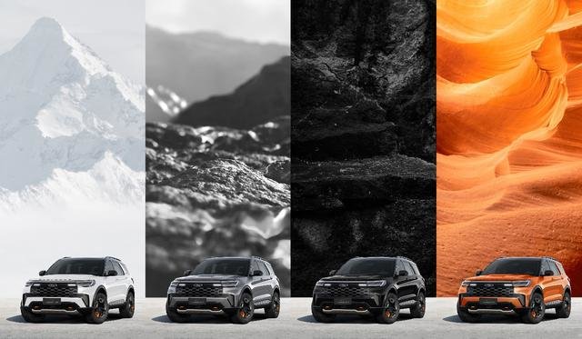 如果你不希望追求饱和度过高的颜色,福特探险者昆仑巅峰版还提供“塞舌尔黑、白令海灰、格陵兰白”的额外三种选择,分别对雪、山、林的地形。