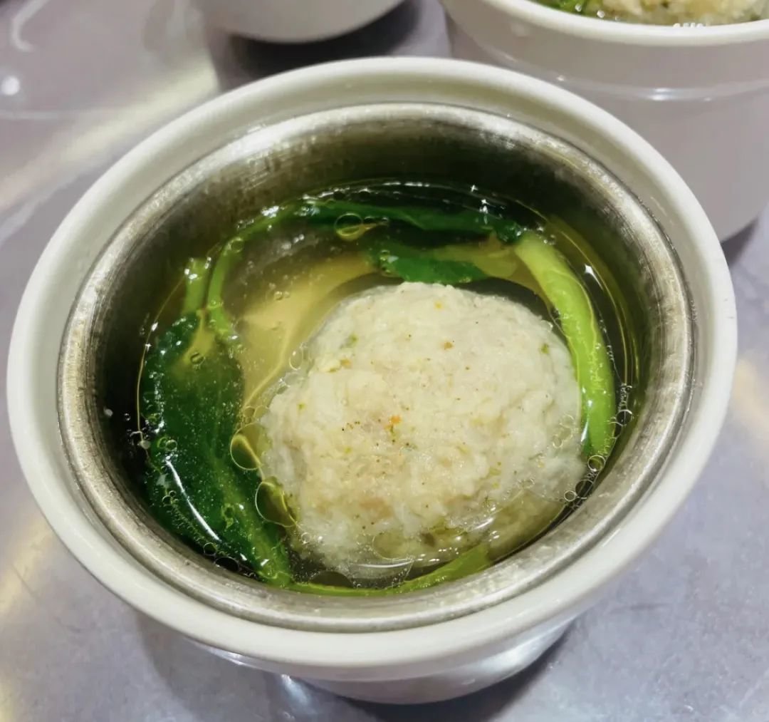 蟹粉狮子头是必点,每人一盅,狮子头有小孩拳头大小,看似寡淡,入口却很惊艳。正宗的狮子头讲究细切粗斩带出的颗粒感,入口能明显吃出颗粒感。
