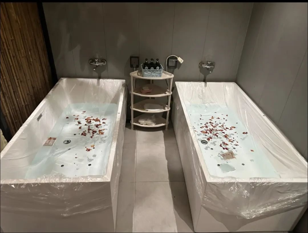 如果第一次搓澡觉得不好意思,可以选择单人间;如果不介意与朋友坦诚相见,还能选择双人间、四人间。
