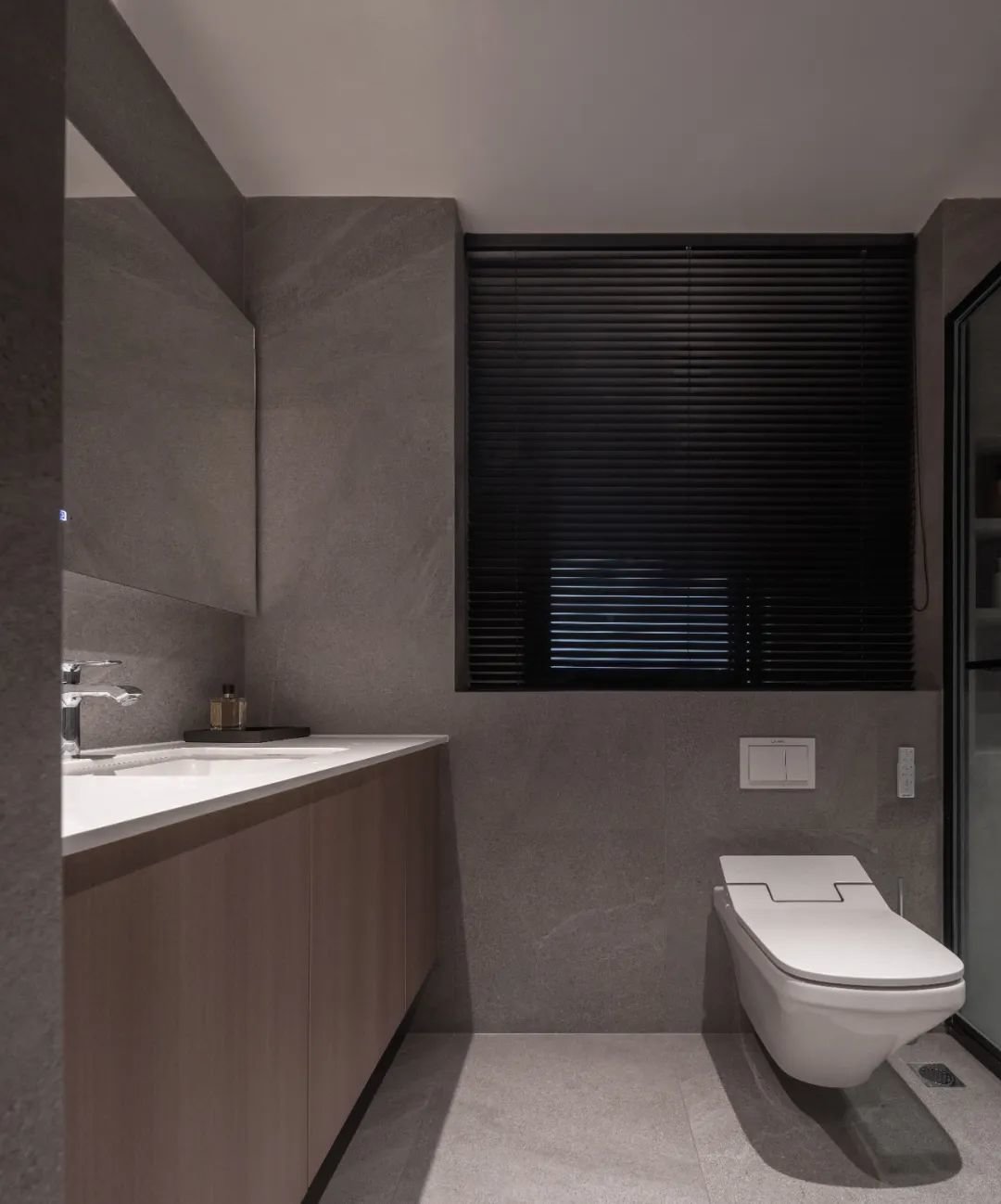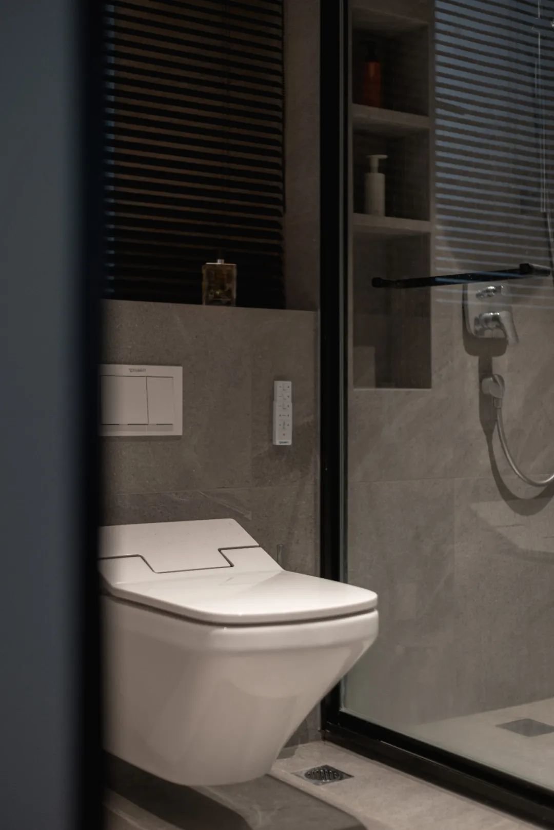 卫生间做了玻璃隔断达到干湿分离,将原马桶间的窗户做了封闭,墙面砌了壁龛放置沐浴用品。