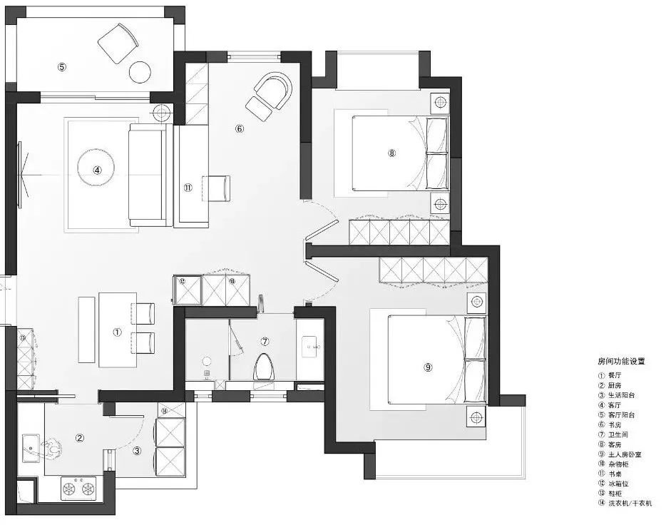 2、将次卧室改为开放式书房区,满足在家办公的需求,增加空间交流;