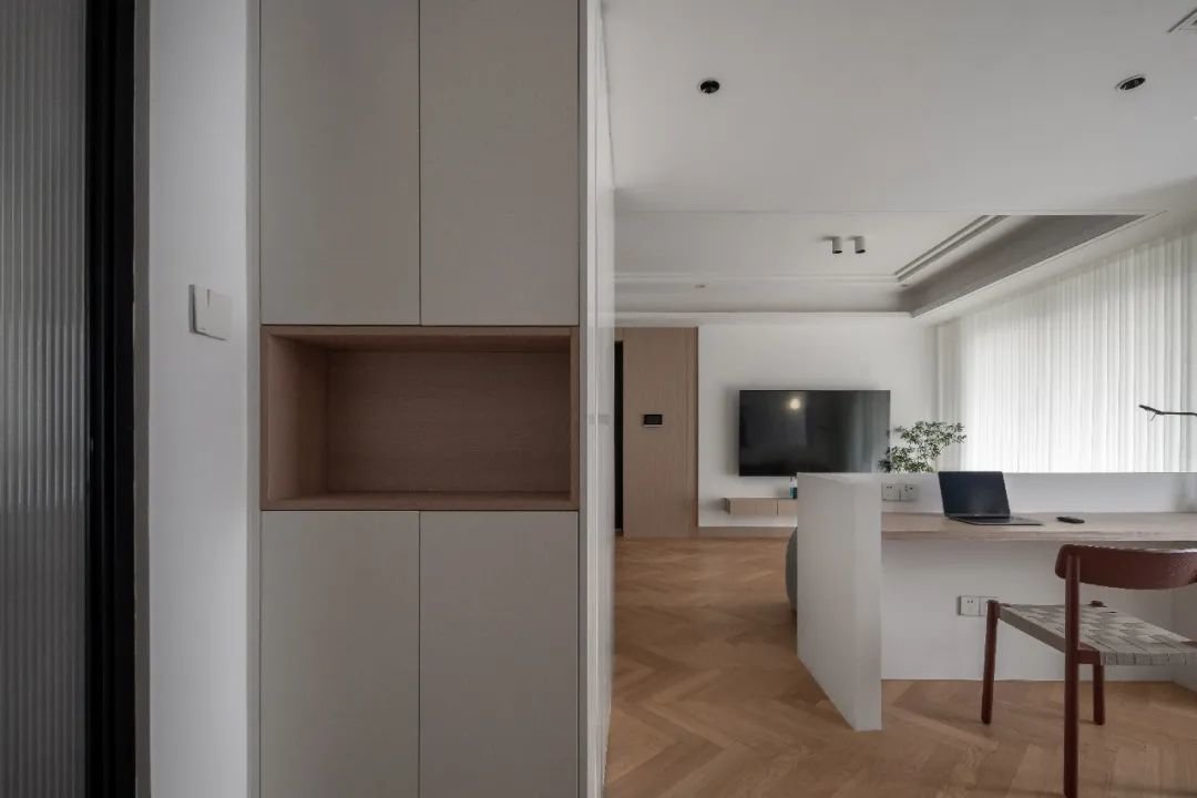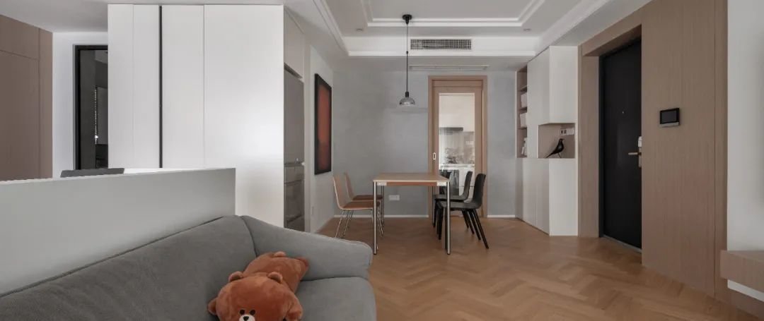 冰箱柜同时遮挡入户视线直通主卧室,增强私密性。