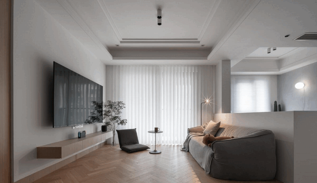 拆除客厅及卧室间的墙体后将空间打通,增加空间视野和采光。