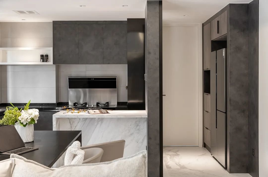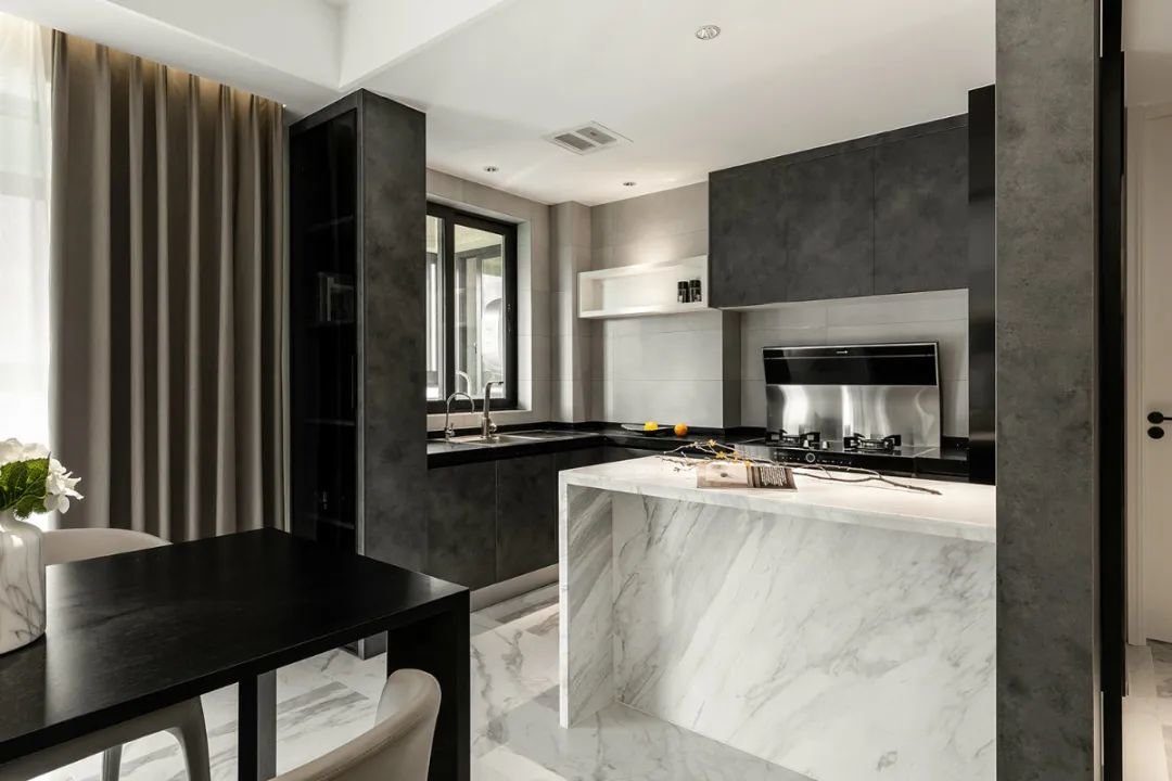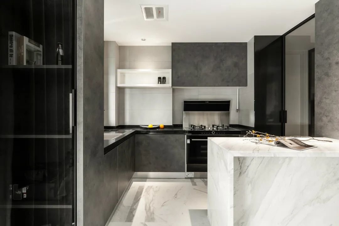 ▲为满足业主对于生活空间的多元化需求,该厨房采用了开放式设计,并在其中央特别设置了一个岛台。这个岛台不仅可以作为厨房工作区,还可以作为家庭聚会和社交活动的场所。同时,岛台的设计还增加了厨房的储物空间和工作流程的效率。