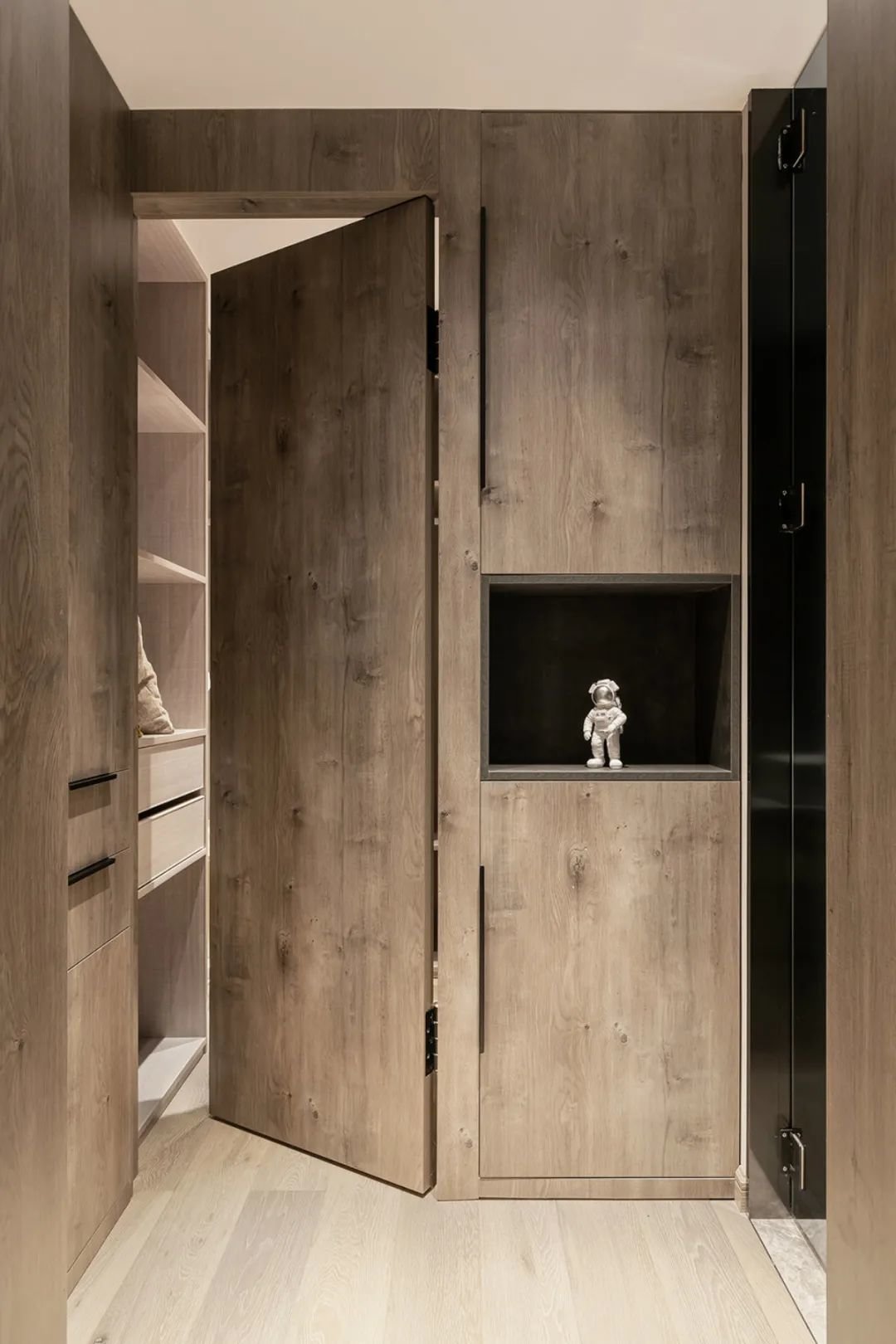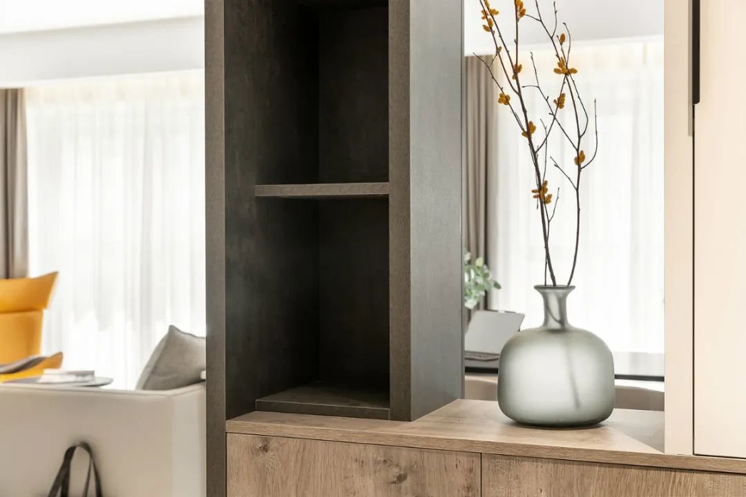 ▲为了增加家里的储物功能,我们在主卧的入口处安装了一个收纳柜。这个收纳柜不仅提供了足够的储物空间,还为主卧的整体布局增添了一份美感。家里的杂物和衣物现在有了一个合适的存放位置,不再占用其他空间的空间。