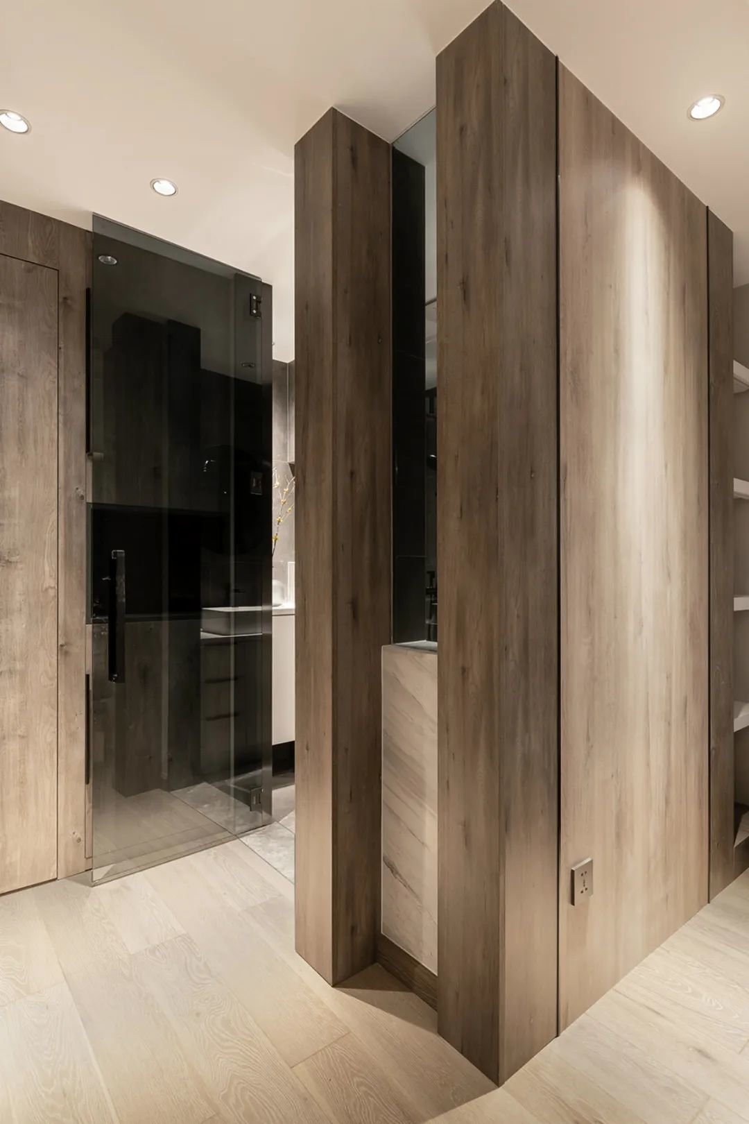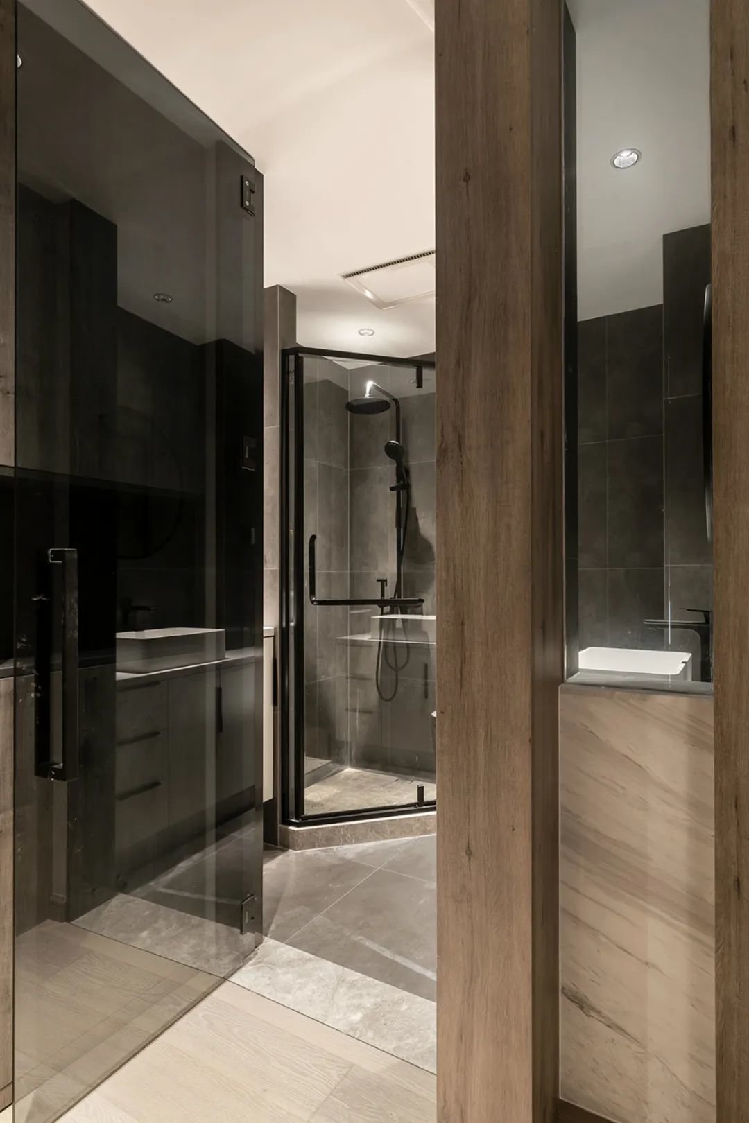 ▲主卫的门采用了玻璃材质,这一设计巧妙地增加了采光效果,让整个卫生间更加明亮通透。此外,玻璃门还能够营造一种开放感,使卫生间空间更加宽敞舒适。对于暗卫来说,这一设计更是如获至宝,能够有效地改善原本阴暗潮湿的环境,让人们在使用卫生间时感受到更加舒适的氛围。