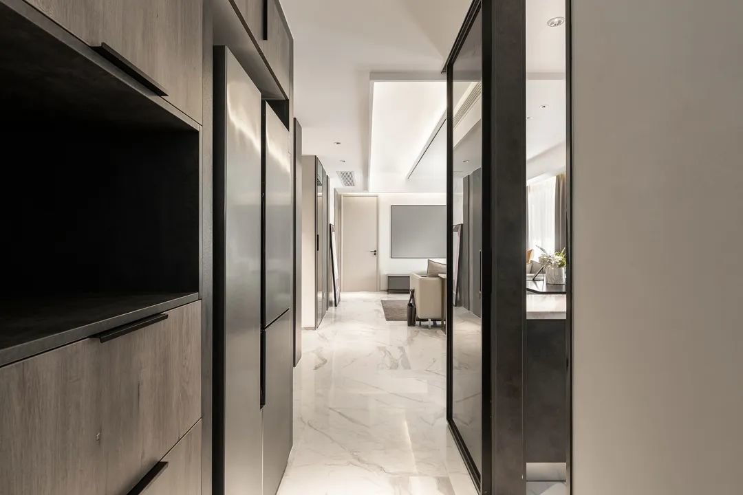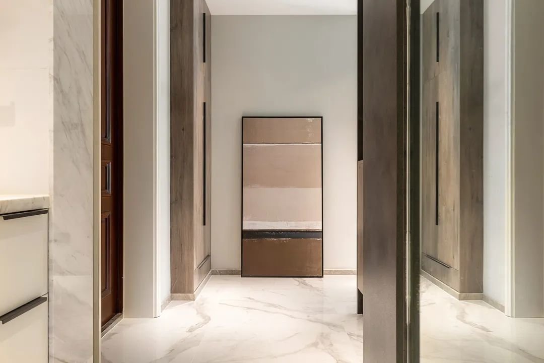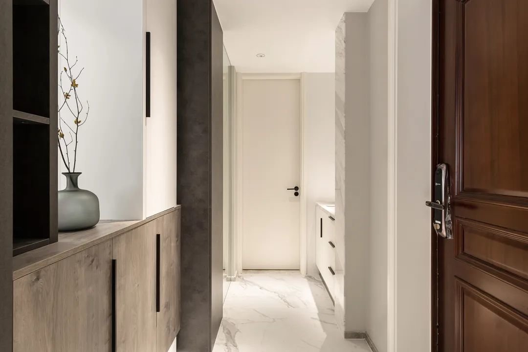 ▲在玄关的左侧,我们可以看到主卧衣帽间的墙体,这面墙体上放着一幅美丽的挂画,为整个空间增添了一份艺术气息。而在右侧,则是通往公共卫生间的通道,为居住者带来了方便和便利。在这个温馨的家庭中,玄关的布置也是别具一格,让人们在进入房屋的第一时间,就能感受到温馨和舒适。