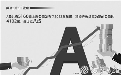 同花顺iFinD数据显示,截至5月5日收盘,A股共有5160家上市公司发布了2022年年报,按照加权平均净资产收益率的统计口径,净资产收益率为正的公司达4102家,占比近八成。而上述4102家公司中,有425家公司的净资产收益率超20%,1317家公司的净资产收益率介于10%至20%之间,2360家公司的净资产收益率低于10%。