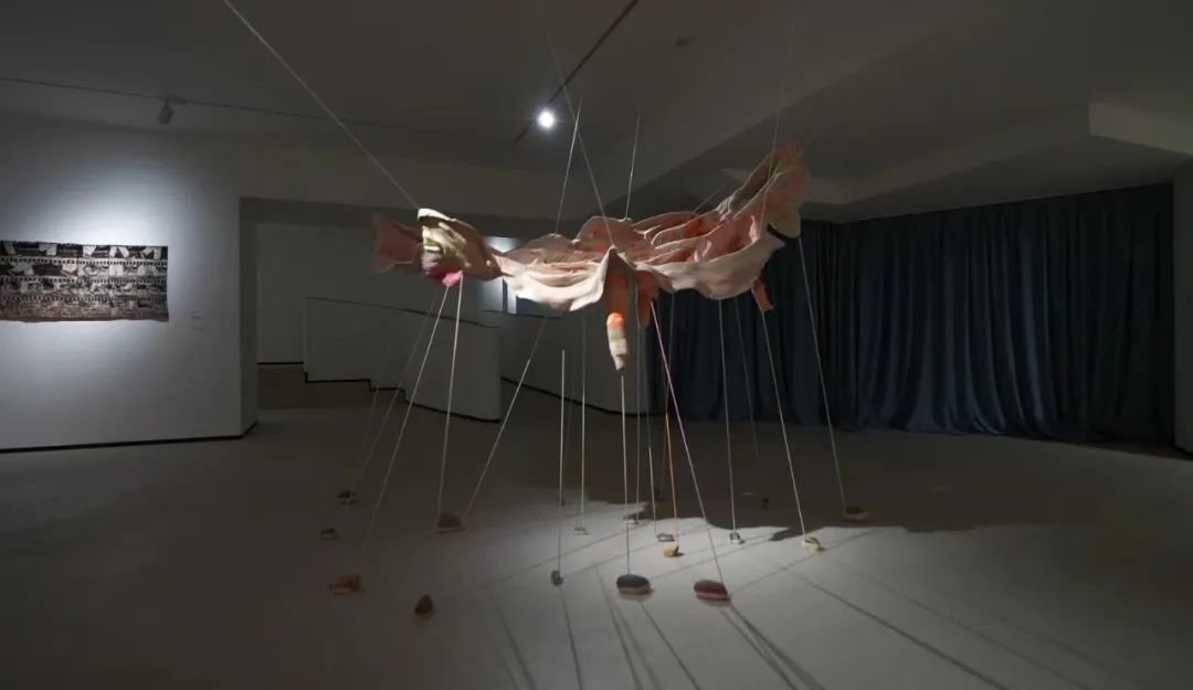 展览的脉络是从原始的的神话到生命的起源,到人类赋予织物以平面秩序,再到进入空间,最后形成了如纤维丛般纠缠的文明。