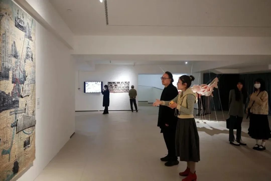 ▲ ”颠覆之线——第五届纤维艺术新锐展“展览现场,策展人许嘉导览