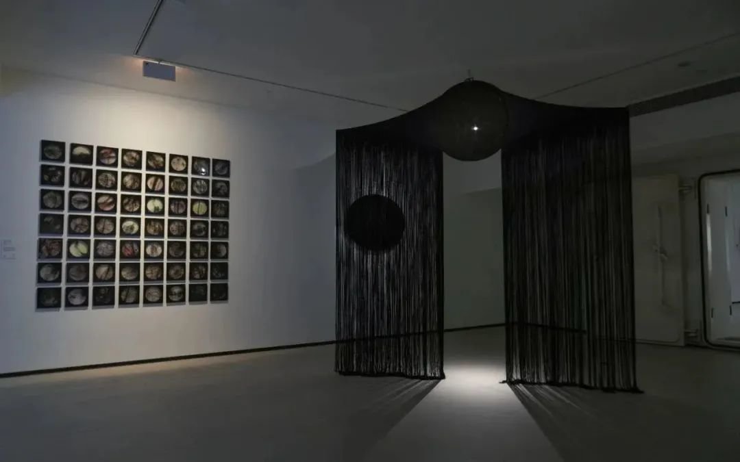 ▲ 孙成岩,《星屑》,悬挂装置尺寸:长2.7m 高可变,墙面单件尺寸:100cm*79cm,其余尺寸可变