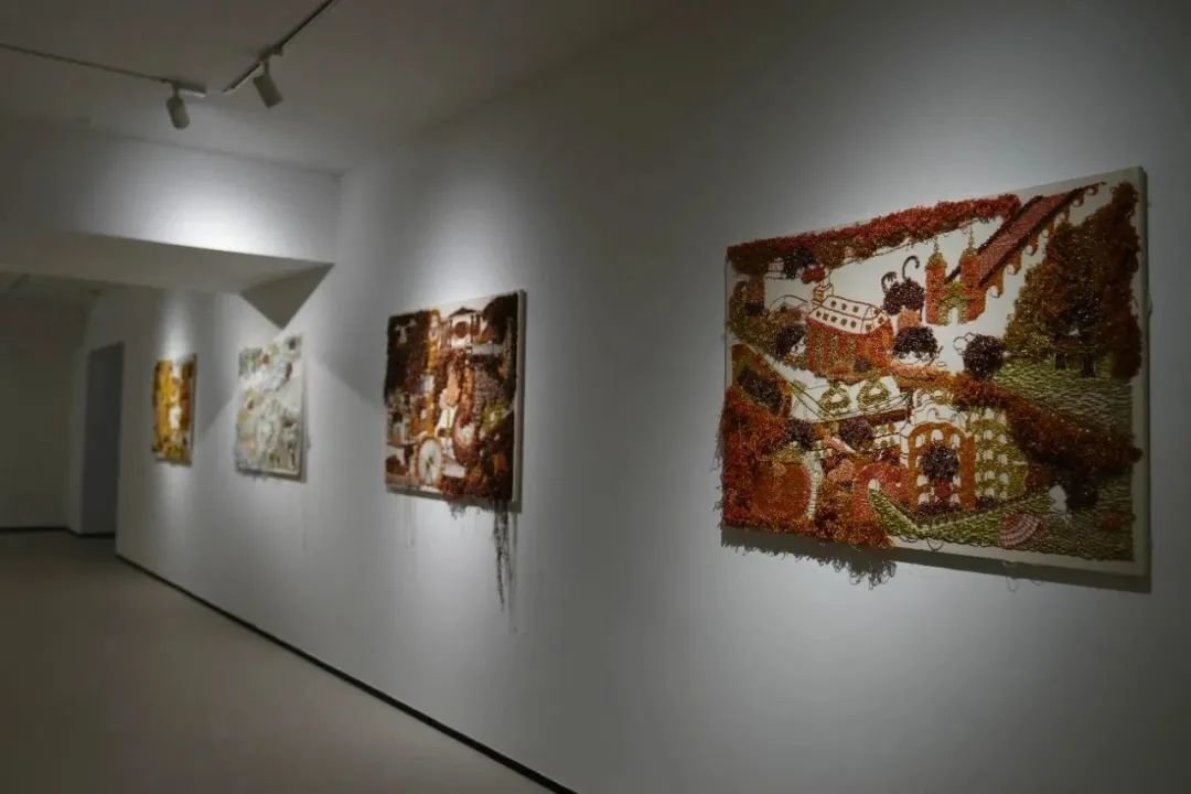 值得强调的是纤维系的老师都非常给力,许多老师都专门为这一次的展览创作。比如应歆珣老师的绿色的空间,石冰的工作室的空间,都是全新的作品,我的戳戳绣作品还有宋春阳老师的作品,也是为这次展览专门创作的。