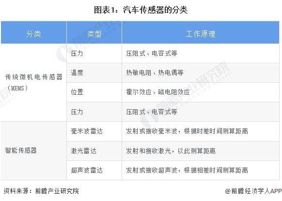 汽车传感器主要指的是汽车测量系统中的前置部件,可以把输入量转变成能够进行测量的数据信号,且设计有很多科学原理,需要诸多高新科技与学科之间的紧密配合。根据汽车传感器装载的目的不同,可以分为提升单车信息化水平的传统微机电传感器 ( MEMS ) 和为无人驾驶提供支持的智能传感器两大类。