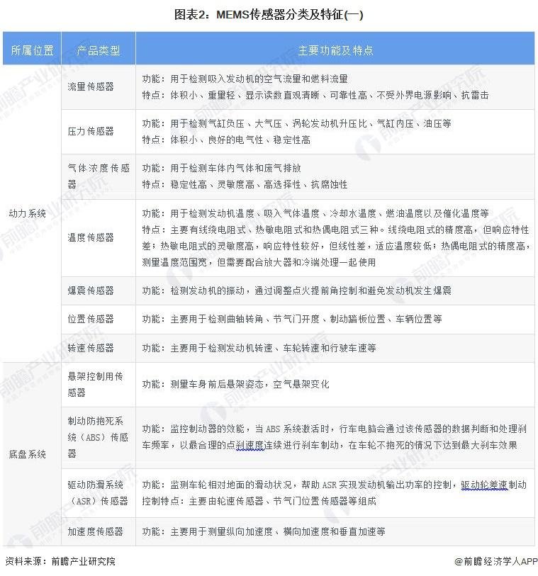 MEMS 传感器在汽车领域的应用规模持续扩大