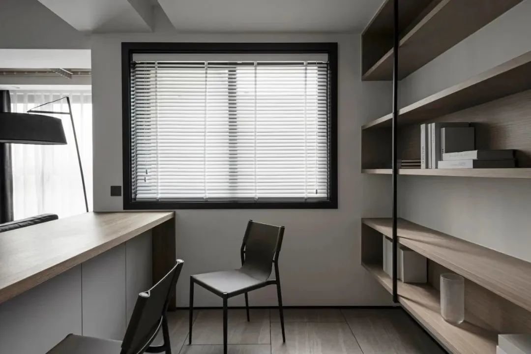 ▲书房和客厅之间被一张漂亮的桌子隔开,这张桌子不仅起到了隔断的作用,还让这两个空间之间产生了联系,形成了一个和谐的整体。墙面的设计延续了客厅留白的风格,使得整个房间更加明亮通透,让人感觉舒适自在。