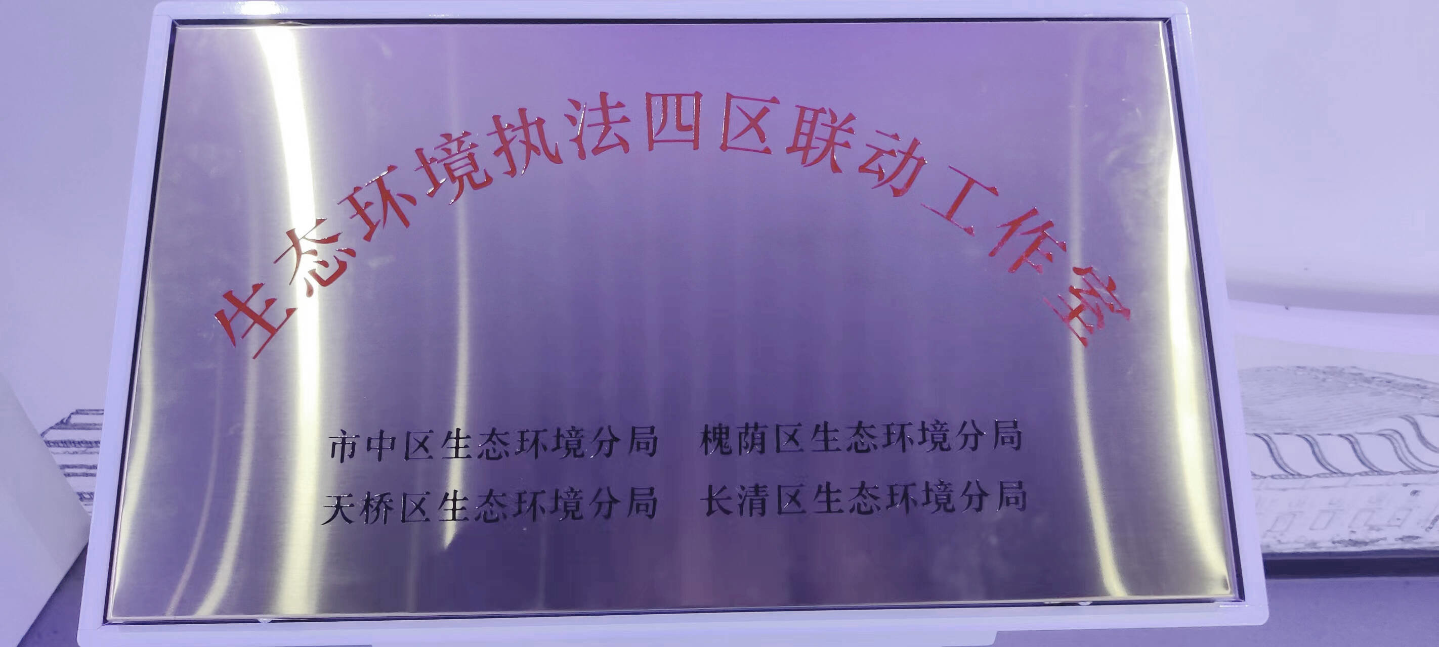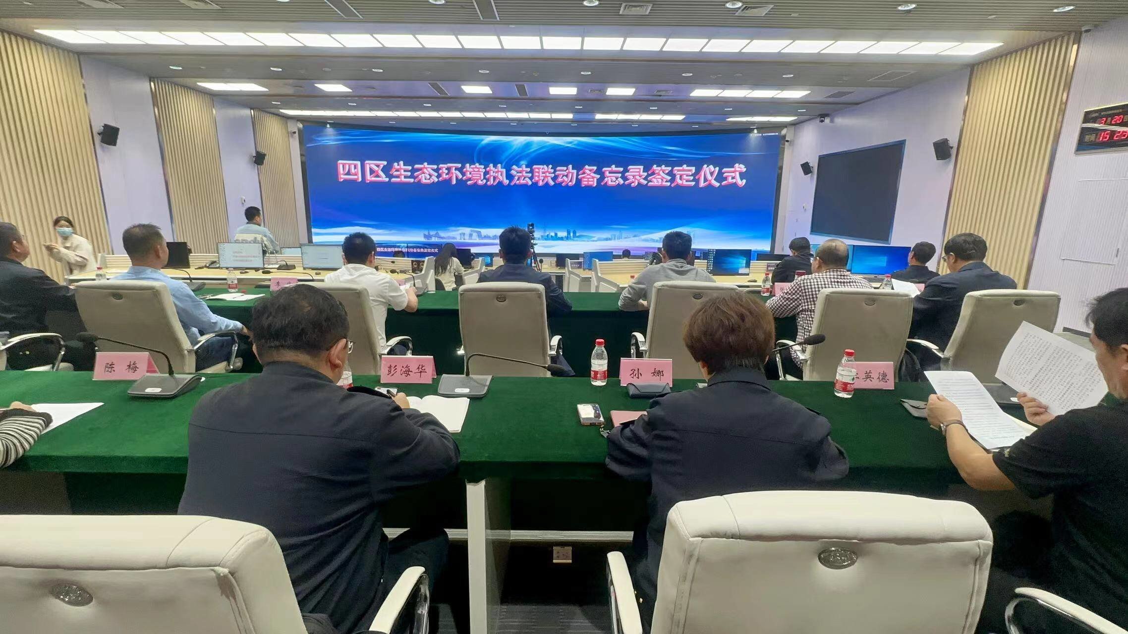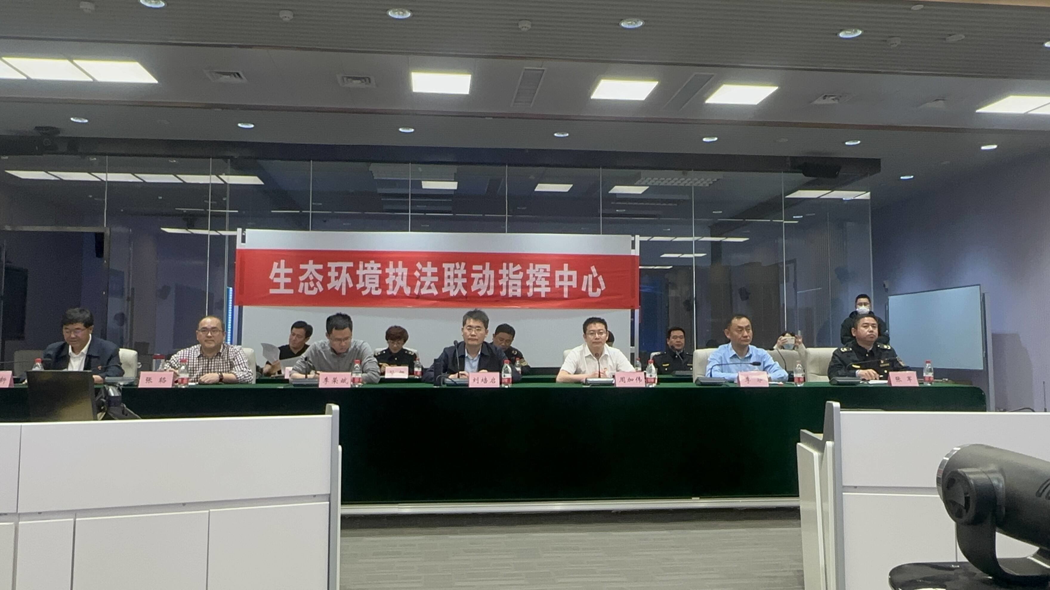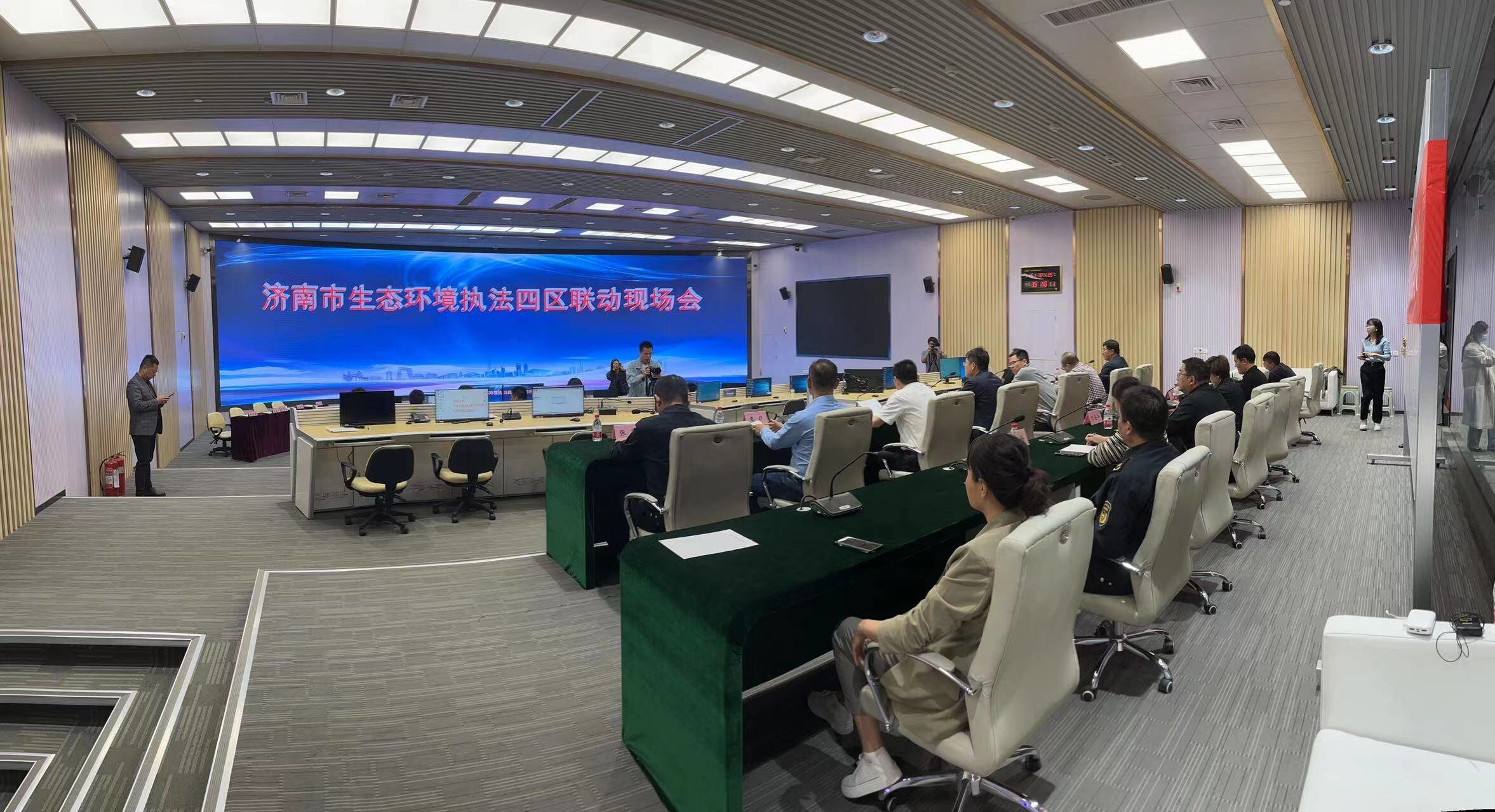 5月8日,槐荫区生态环境四区联动执法指挥中心的大屏幕上正在播放实时画面,两架无人机分别在市中、槐荫、长清三区交界处升空,对区域交界处饮用水源地、区域污染源等情况开展空中巡飞检查,四区联合执法人员分组开展现场检查的清晰画面也同步传送到大屏幕上。伴随着本次联合执法行动的开展,济南市生态环境局市中分局、天桥分局、长清分局、槐荫分局联合成立的四区“生态环境执法联动工作室”在槐荫区正式挂牌,进一步开拓了执法新思路,创新了执法新模式,提升了执法新举措。