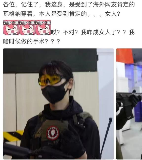 在她此前的动态里,可以看出比较喜欢玩军事射击游戏,也有一些穿着“雇佣兵装扮”的照片和跳舞视频,但他表示拍摄纯粹是因为自己喜欢这种装扮,并无其它原因。难道因为一张穿了军事服装,胸前贴有一个“瓦格纳”标识牌的照片就被造谣成雇佣兵?