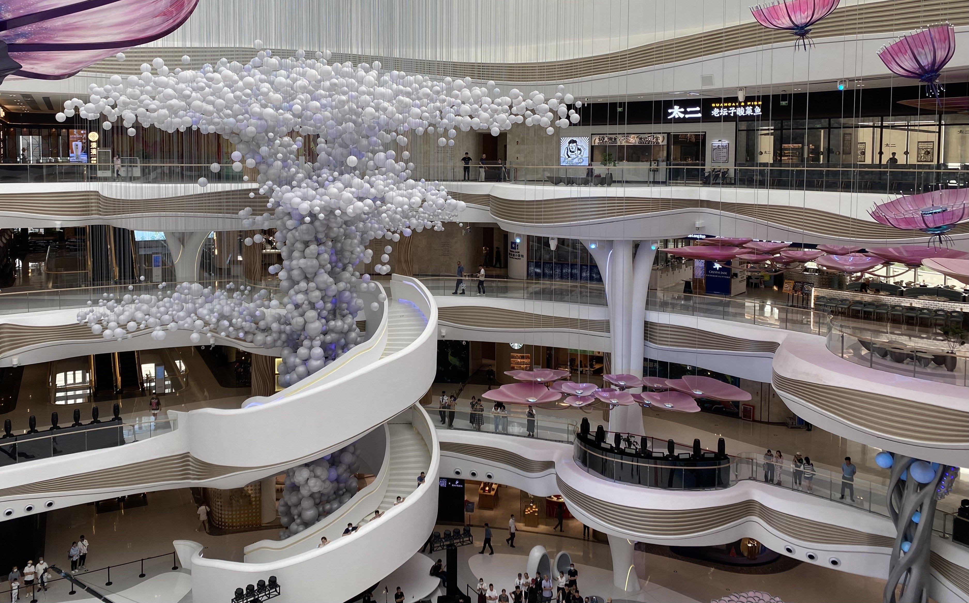 cdf海口国际免税城内,有税商品、免税商品、餐饮都在同一栋楼内。