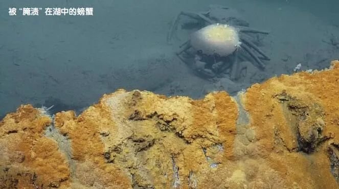 与之相似,乍一眼看去,海底湖就像一个“墓地”,湖面上漂浮着许多鱼虾的尸体,却看不到任何游动的活物。经验丰富的鱼儿甚至会专门绕开海底湖,如果迫不得已必须经过,它们就会游得比之前更快,快速通过这片区域,仿佛怕沾上什么“脏东西”。偶尔有那么几只“涉世未深”的小鱼小虾,匍匐着爬到湖边,如果一不小心栽入湖中,再浮起来时已经变成了一具具“干尸”。