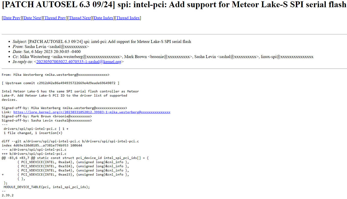 在5月6日发布的Linux 6.3更新中,它增加了对Meteor Lake-S SPI串行闪存的支持,支持设备的驱动程序列表中也添加了Meteor Lake-S PCI ID列表。
