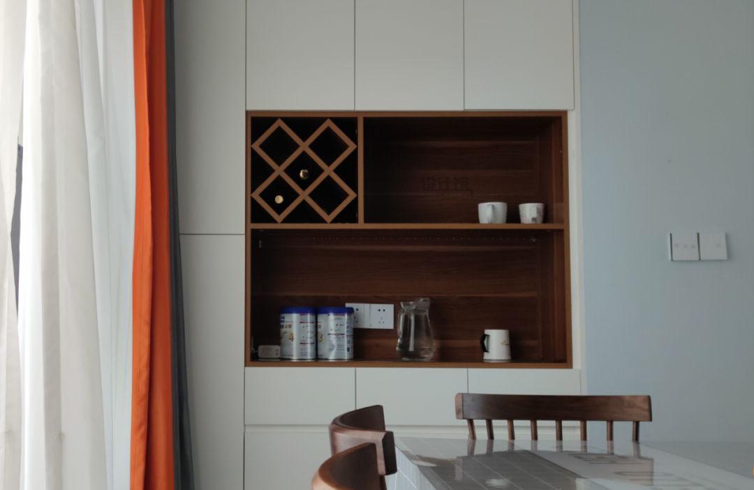 若空间有限的话,餐边柜至少也要有30cm的深度,若是太浅的话就要斟酌一下做不做了,毕竟太浅的餐边柜,连水壶都不好放就没太大必要了。