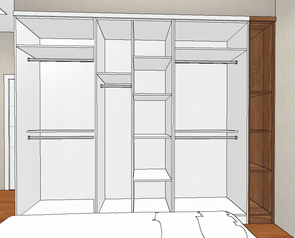 如果墙面是承重墙拆不了的话,那么衣柜也可以采取横向的伸缩挂衣杆设计,如下图这个: