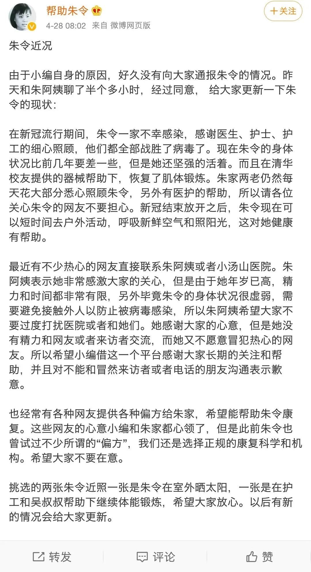 痊愈已经不奢望了,2013年后,朱令家人逐渐谢绝媒体采访。