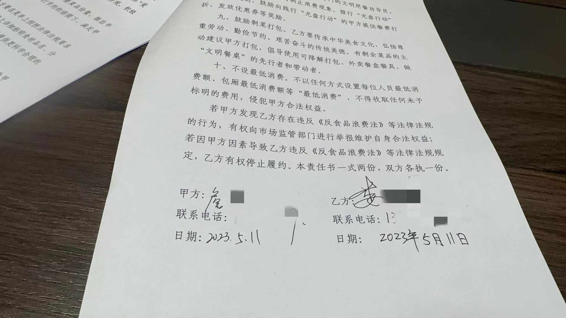 该酒店负责人表示,除了与宴席举办方签订反浪费责任书外,酒店还会科学合理设计菜单,在经营场所醒目位置张贴反食品浪费、光盘行动等标识标语,主动提醒顾客适量点餐消费,后续还会推出“半份菜”“小份菜”,积极执行反浪费政策。