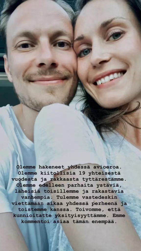 据路透社报道,即将离任的芬兰总理桑娜·马林当地时间10日在社交媒体上宣布,她已经与其丈夫马库斯·莱科宁共同申请离婚。
